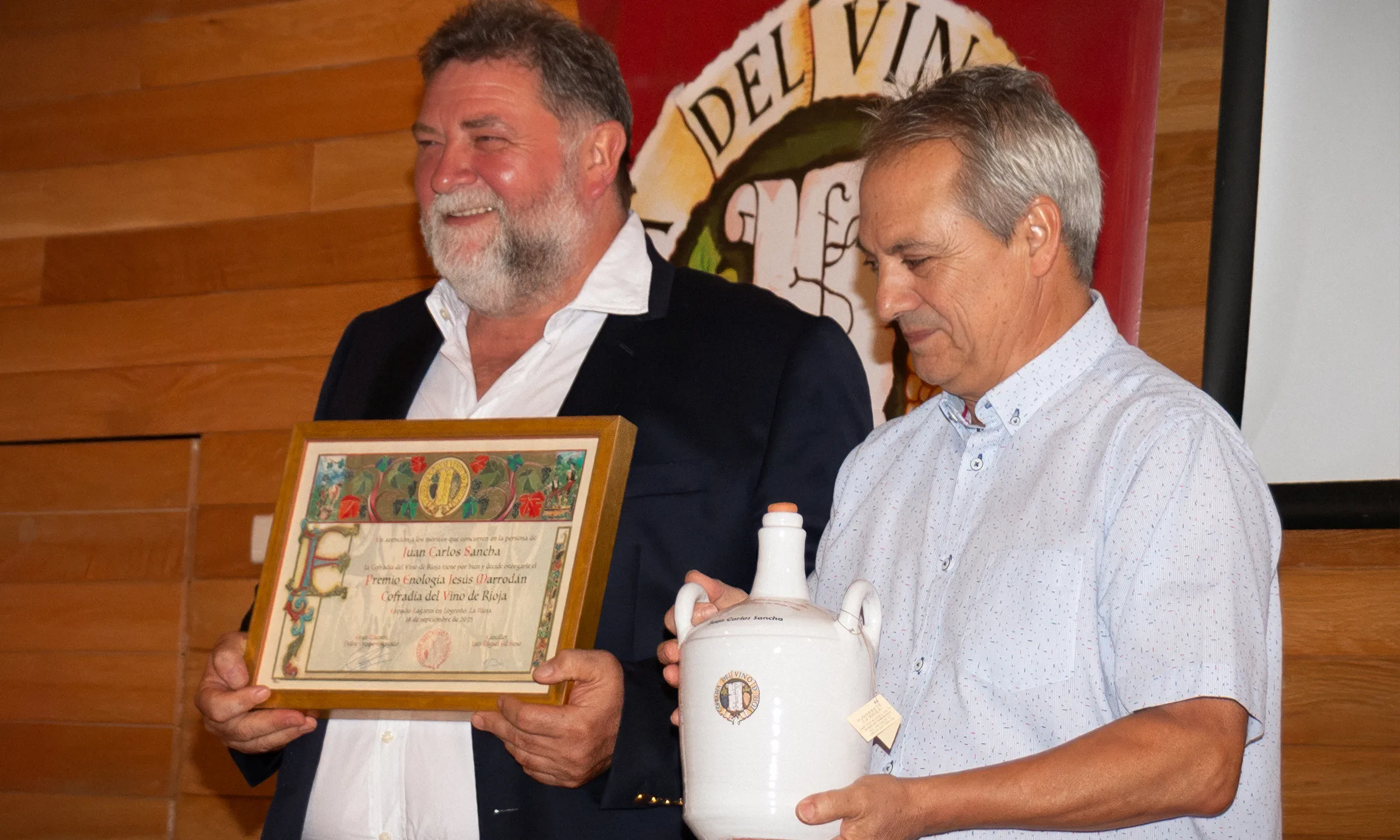 Al enólogo y profesor Juan Carlos Sancha, reconocido defensor del patrimonio vitícola riojano y de una viticultura de calidad respetuosa con el medio ambiente, le entregó el premio de ‘Enología Jesús Marrodán” el director de La Prensa del Rioja, Javier Pascual, quien destacó el acierto de que el premio rememorara la figura del enólogo de Bodegas Marqués de Murrieta durante cuatro décadas, un prestigioso profesional de una época en la que la figura de los enólogos estaba lejos del foco mediático y del protagonismo que alcanzarían en el siglo actual.