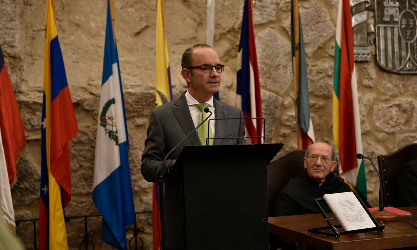 No faltó en el capítulo de agradecimientos de Miguel Ibáñez un especial recuerdo para el padre Olarte, prior en su día de la Comunidad de Agustinos Recoletos que rige el monasterio e impulsor de la recuperación de ese gran tesoro que representaba una biblioteca expoliada tras la desamortización y sumida en el abandono. “Mis conversaciones con él en su despacho, en la biblioteca, nuestro empeño compartido por tratar de dar voz a las miles de historias y secretos que encierran los muros de estos monasterios” dieron como fruto las numerosas investigaciones y publicaciones sobre San Millán realizadas por Miguel Ibáñez desde que en 1992 dedicó su tesis doctoral a Gonzalo de Berceo, el monje que escribió los primeros versos en lengua castellana entre los muros del monasterio en el Siglo XIII.