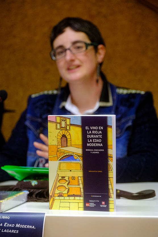 Sara Bustos escaló en la historia de La Rioja para recordar las villas romanas, la importancia de los Monasterios, como el de San Millán, o los hospitales del Camino de Santiago en favor del cultivo de la vid y su producto, el vino, recalando en la Edad Moderna en la que las poblaciones emplean sus privilegios para asegurar la salida del vino. Citó las ordenanzas de Calahorra de 1578, que se centraban, entre otros muchos aspectos, “en la preocupación por el hurto de uvas de las viñas con castigos a los que descubrieran llevándose el fruto”, o regulando el precio, la venta y calidad del vino que se elaboraba, sin que ningún vecino pudiera establecer dos tabernas en esta localidad. O la de Logroño de 1607, que sobre las vendimias las prohibía hasta pasado San Miguel (29 de septiembre), pero al mismo tiempo regulando la contratación de jornaleros así como las horas que debían trabajar o la posibilidad de registrar casas sospechosas de que en ellas hubiera uvas robadas. Podo todo ello, Sara Bustos infería que los ayuntamientos tenían amplios poderes para organizar la práctica cotidiana en torno al mundo del vino.