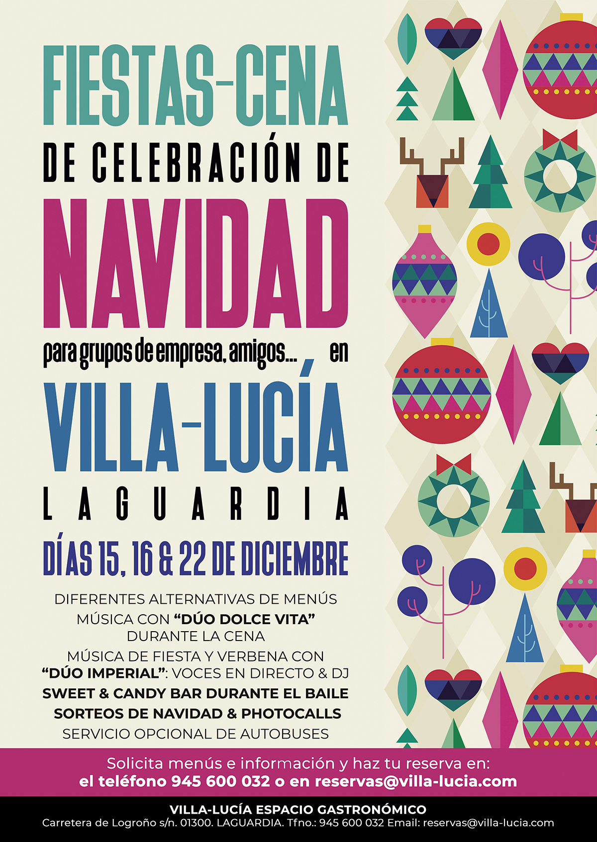 Más información en: reservas@villa-lucia.com o en el teléfono 945.600.032.