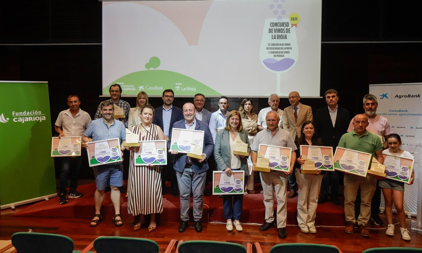 La Fundación Caja Rioja y CaixaBank han celebrado en Logroño la entrega de premios del 35º Concurso de Vinos de Cosecheros de La Rioja y la tercera edición del Concurso de Vinos de Pueblo, reconociendo la excelencia y el compromiso del sector vitivinícola riojano con la calidad y la tradición.