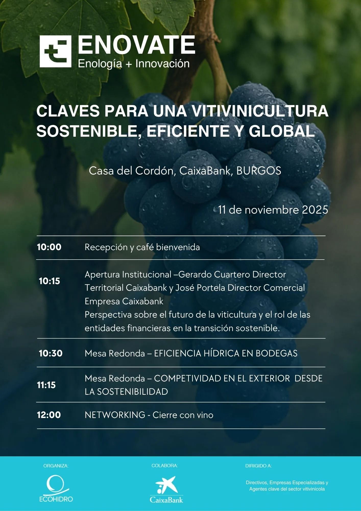 ENOVATE nace como una plataforma de conocimiento y colaboración en la que se explorarán herramientas, soluciones y alianzas para avanzar hacia una vitivinicultura moderna, respetuosa y eficiente. En un contexto marcado por el cambio climático, la evolución de la demanda internacional y la presión sobre los recursos naturales, el encuentro ofrecerá una visión estratégica sobre cómo adaptar la producción vitivinícola a los retos del futuro.