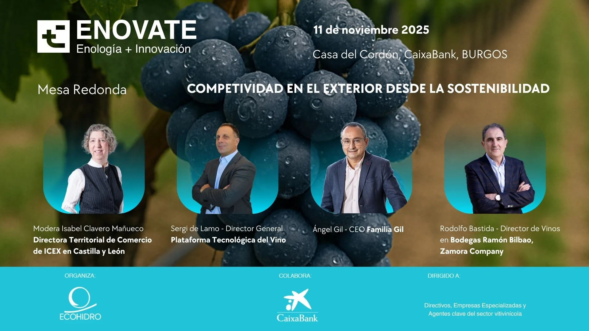 La Casa del Cordón, sede de CaixaBank en Burgos, será el escenario de ENOVATE 2025, una jornada técnica concebida como punto de encuentro para directivos, empresas especializadas y agentes clave del sector vitivinícola. El evento, promovido por ECOHIDRO, reunirá a expertos y líderes empresariales para analizar los desafíos y oportunidades que afronta la vitivinicultura en el contexto actual de transición ecológica, digitalización y apertura de nuevos mercados internacionales.