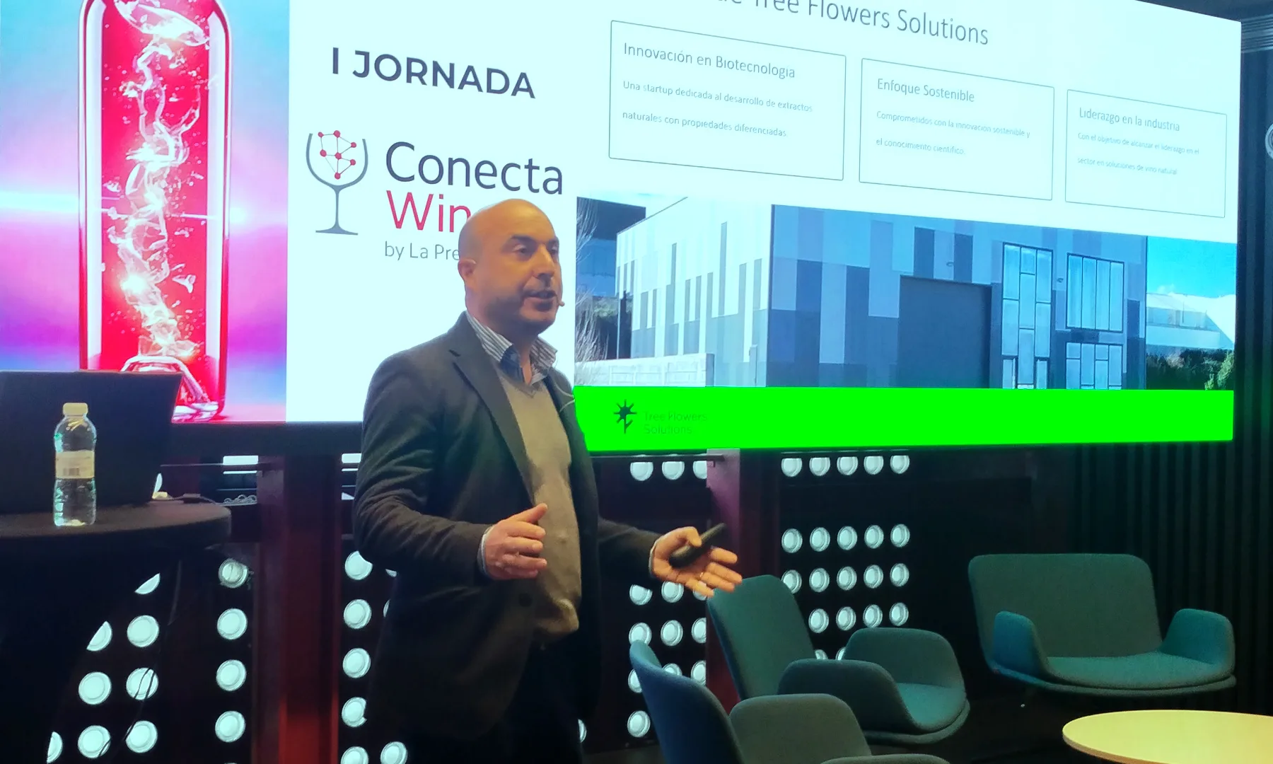 En la primera edición de Conecta Wine by La Prensa del Rioja, la startup portuguesa Tree Flowers Solutions (TFS) presentó Chestwine®, un conservante natural que mejora la conservación del vino evitando el uso de dióxido de azufre (SO₂), preservando aromas, sabores y color de manera sostenible.