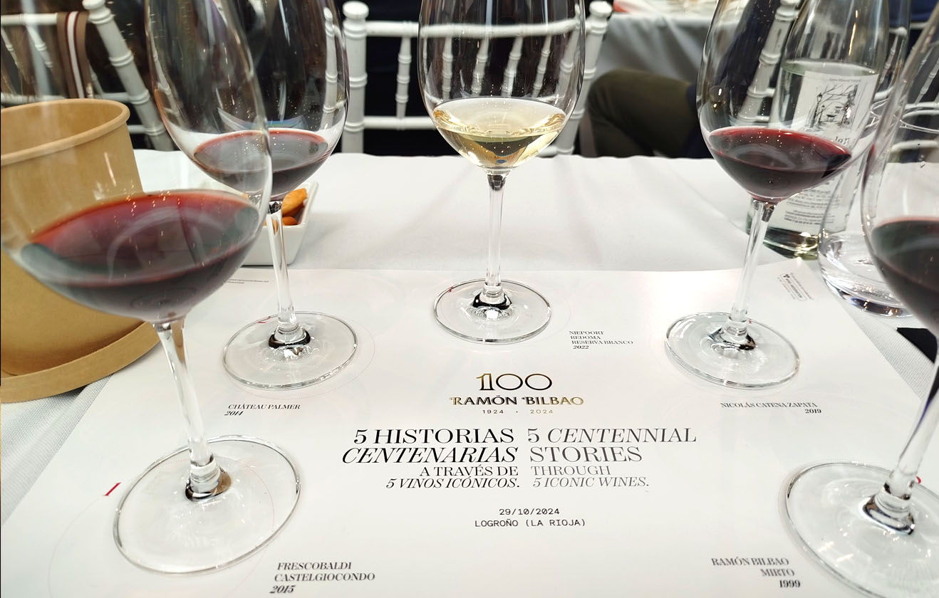 Siguió una ‘Cata Centenaria’ en la se degustaron referencias icónicas de las bodegas al las que se sumó Frescobaldi (Italia), cuyo vino Castek Gioncondo 2025, DOCG Burnelio di Montalcino fue el encargado de abrir la sesión. Siguió Château Palmer 2014 de AOC Margaux; Redoma Reserva Branco 2002 DOC Douro de Niepoort; después Nicolás Catena Zapata 2029 DO Mendoza de Catena Zapata para finalizar con Mirto 1999 de Ramón Bilbao.