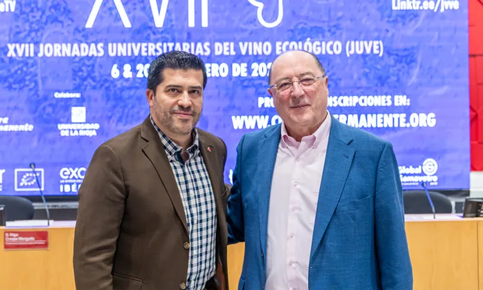 Las XVII Jornadas Universitarias del Vino Ecológico (JUVE), celebradas en el marco de los XVII Premios Ecovino, analizaron en el Aula Magna de la Universidad de La Rioja los principales retos y oportunidades de la producción ecológica de vino, abarcando enfoques técnicos, económicos y medioambientales. Entre los participantes se encontraban Carlos Moro, presidente de Bodegas Familiares Matarromera y de la Plataforma Tecnológica del Vino (PTV), y Mario de la Fuente Lloreda, presidente de Viticultura de la Organización Internacional de la Viña y el Vino (OIV).