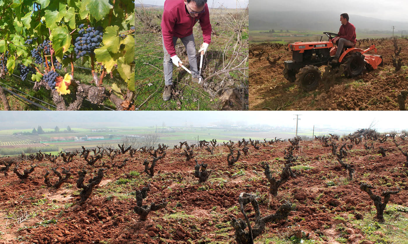 Sin embargo, su historia se remonta a unos años antes, cuando, como nieto de viticultores, se aficionó a la viña desde su más tierna infancia, y empezó a ocuparse del viñedo familiar a los 18 años. Los viñedos se encuentran situados en Baños de Río Tobía “en una de las zonas más altas y frías de Rioja Alta, a una altitud entre los 560 y 740 metros, que cultivamos con prácticas ecológicas y elaboramos bajo la indicación de Vino de Municipio”, explica Clemente García durante nuestra visita a un viñedo de más de 40 años durante uno de los últimos días de poda de este año. La bodega cuenta con viñedos de garnacha y de tempranillo de entre 25 y 75 años y de viura con una media de 60 años.