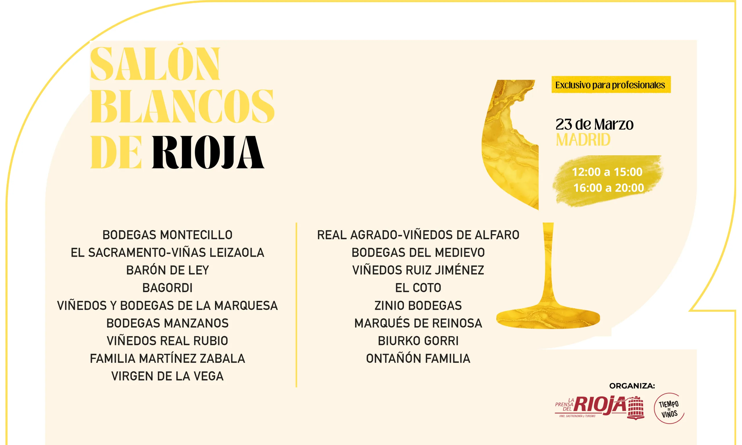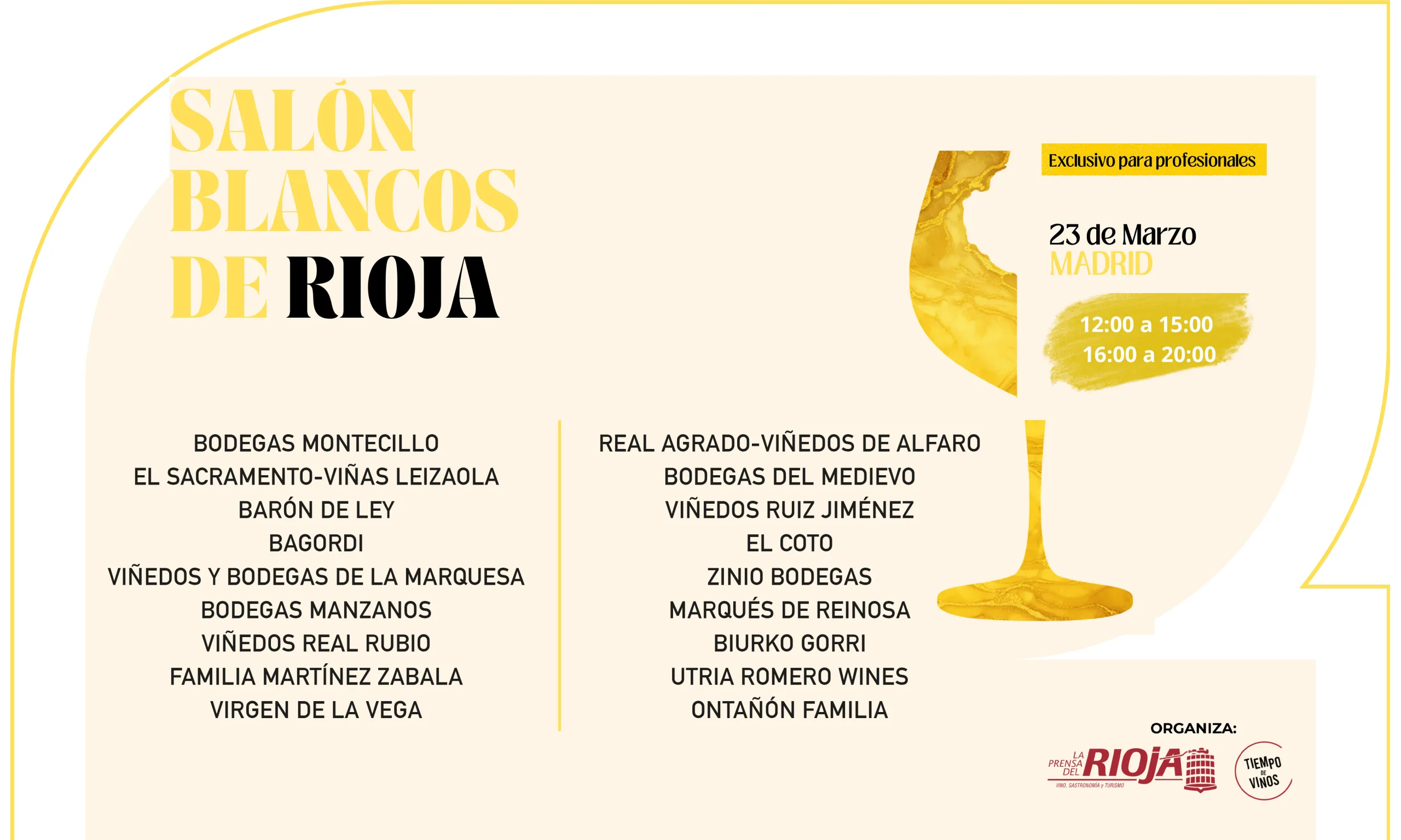 Con este salón, La Prensa del Rioja pretende reforzar la presencia de los blancos en el mercado profesional, propiciar el contacto directo entre bodegas y prescriptores y generar un espacio de análisis y descubrimiento en torno a las tendencias, variedades y estilos que están definiendo el presente y marcando el futuro de los vinos blancos de Rioja.